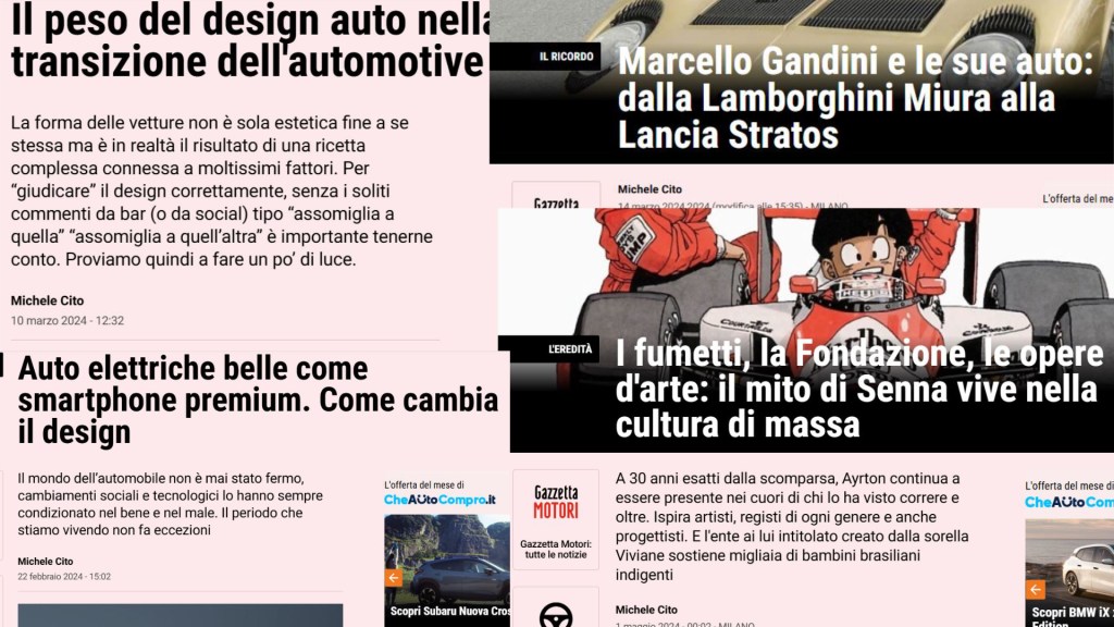 All’attività di design e sviluppo ho affiancato quella di autore, un’attività secondaria ma ricca di soddisfazioni incredibili. Scrivo e produco il mio podcast, chiamato Hangar41, online sui principali canali di podcasting come Spotify, Apple Podcast, Amazon Music, Youtube e molti altri. Inoltre sono stato collaboratore della Redazione Motori della Gazzetta dello Sport e attualmente collaboro con RED Srl e altre realtà editoriali.